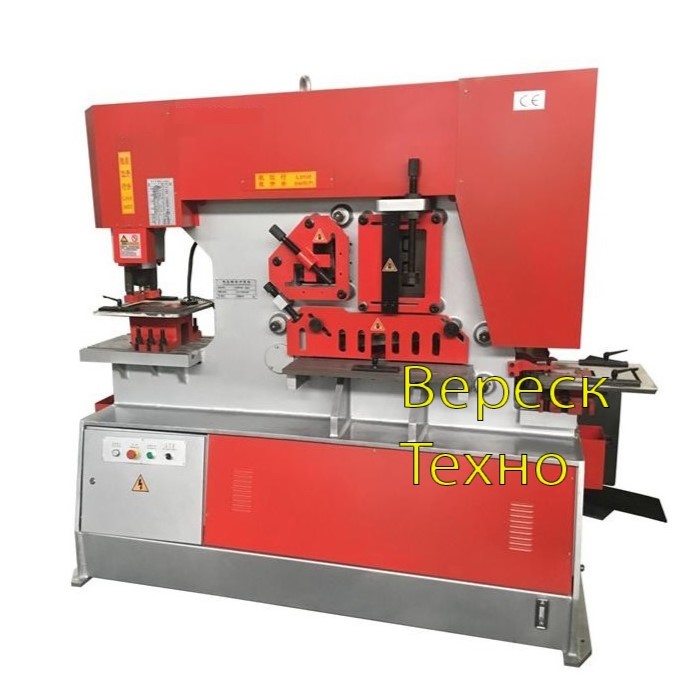 - Пробивка: доступен полный спектр универсальных пробивных штампов. Конструкция позволяет выполнять штамповку железа под большим углом и пробивать большие отверстия. Для простоты эксплуатации используется откидная конструкции съемника, большой стол с линейками и упором; стандартные фитинги; быстрая смена стяжной гайки и втулки для быстрой смены.